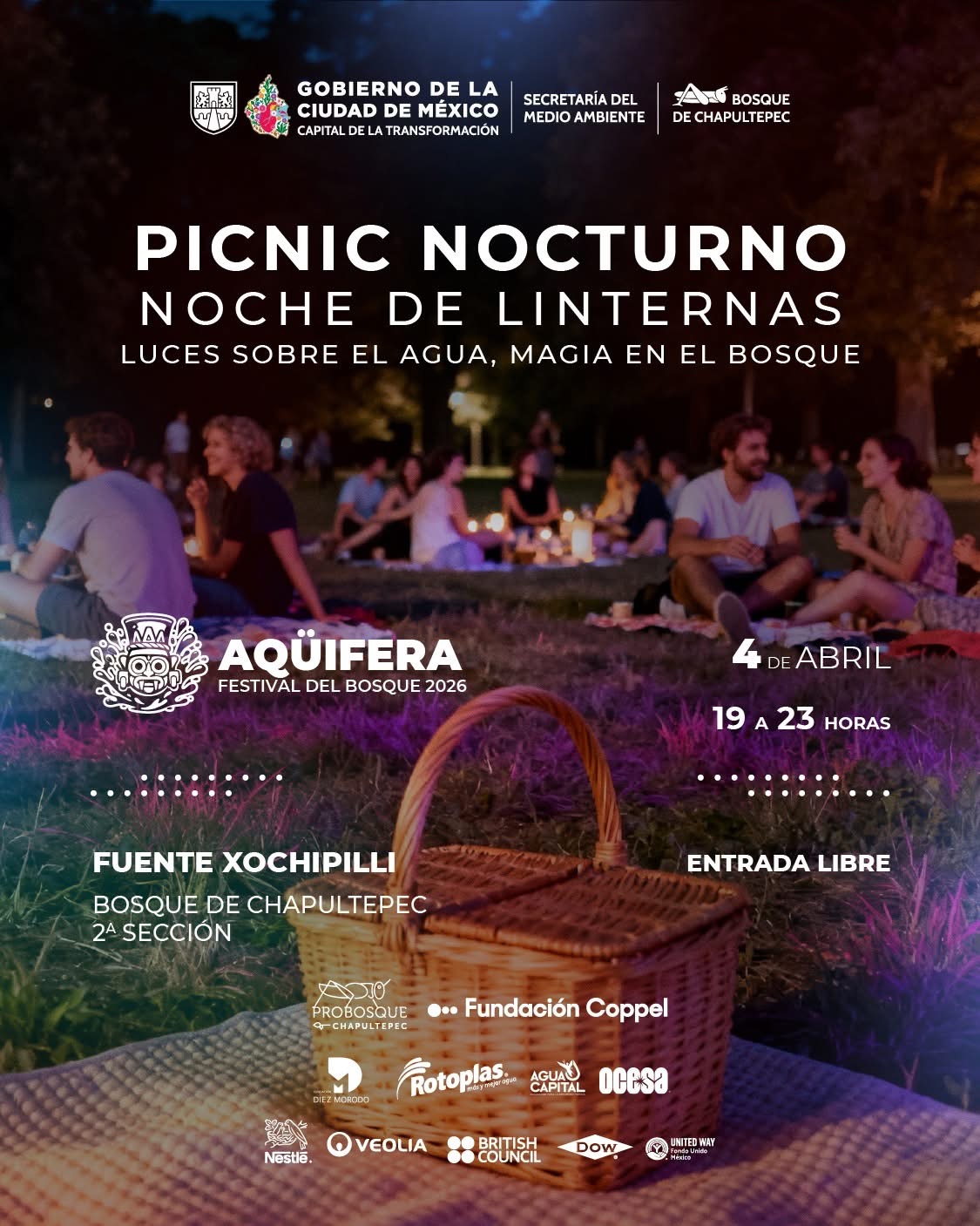 Porque este 4 de abril, habrá un picnic nocturno con la temática Noche de linternas, “Luces sobre el agua, magia en el bosque”.